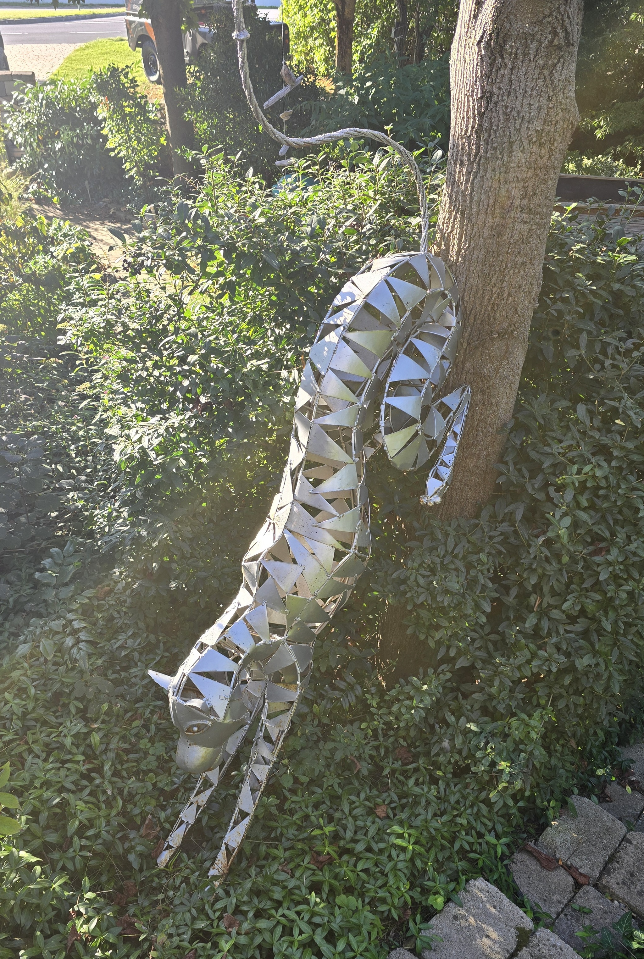 Der lebensgroße Leopard, stammt aus der Hand eines Künstlers in Afrika, der auch für die Gärten von Andre Heller verschiedene Skulpturen fertigt. Der Leopard ist in silber oder in schwarz auf Lager. Jedes Stück ist ein Kunstwerk für sich.