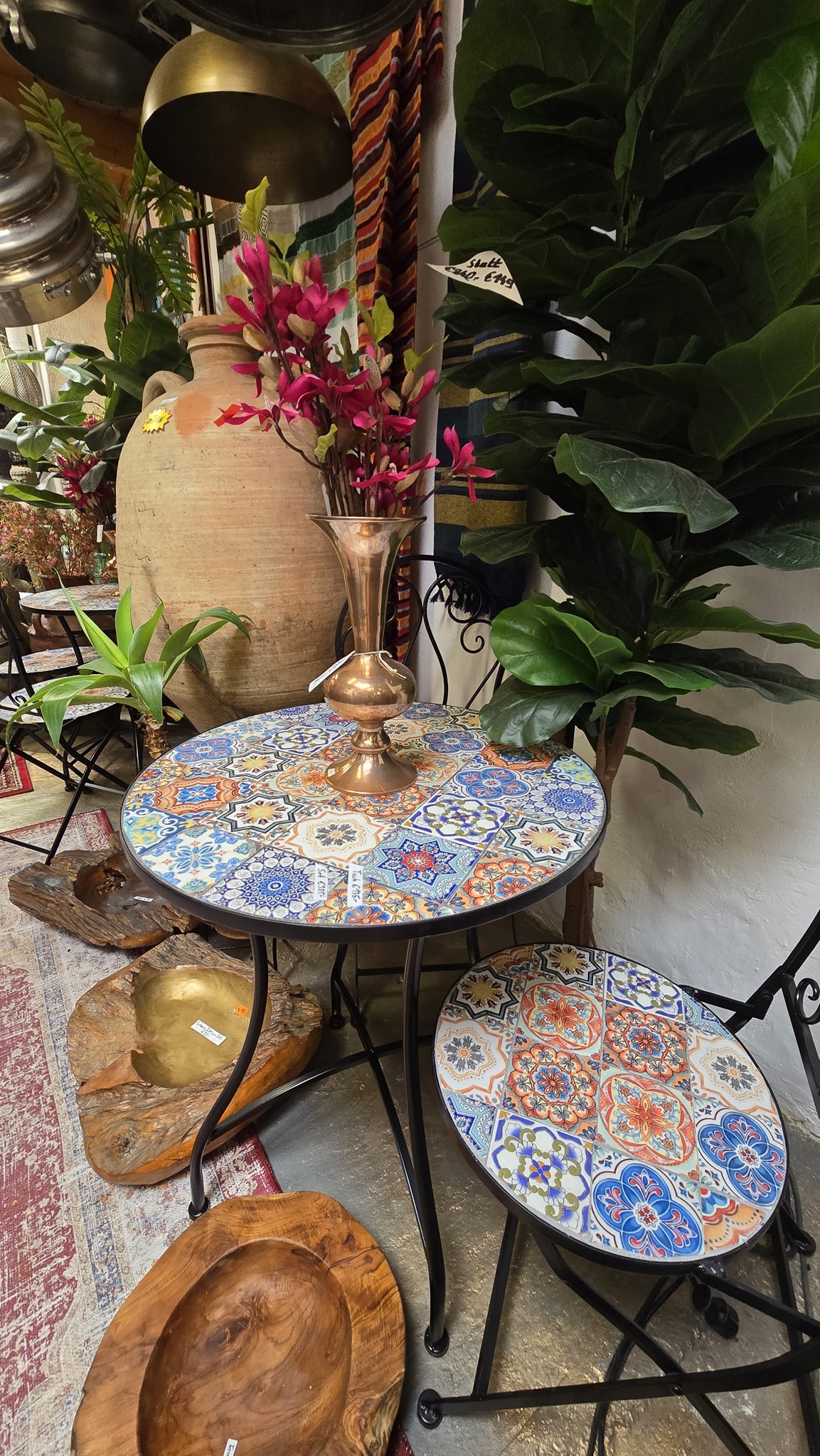 Andalusische Mosaiktische bei Bedarf mit den dazugehörigen Stühlen.